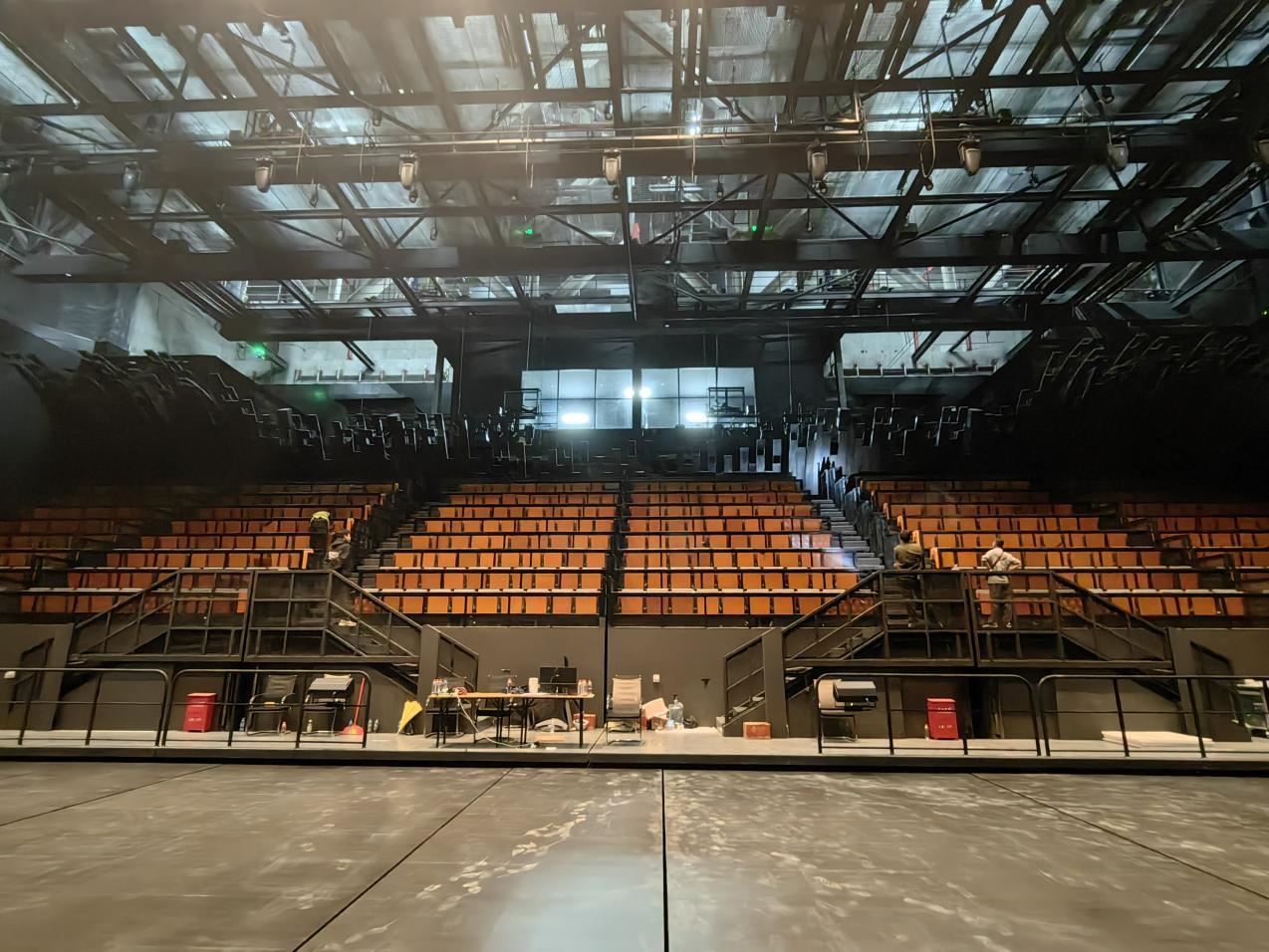 每個(gè)臺階安置整排觀眾席座椅,單套設(shè)備可容納觀眾80人,同時(shí)設(shè)置進(jìn)場/散場通道貫穿臺體前后。該設(shè)備從空間動感、