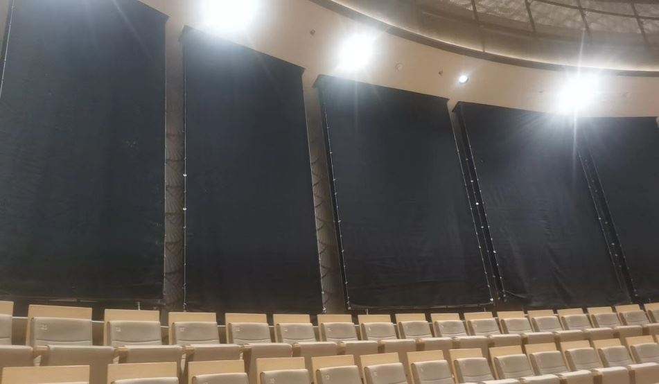 雙層吸聲簾幕,明裝位于觀眾席兩側及后側。