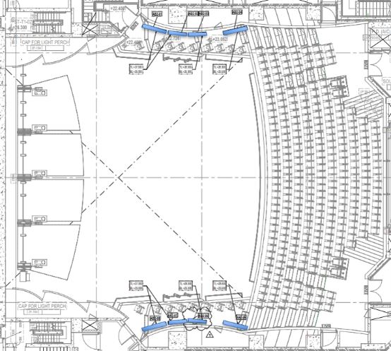 設置于觀眾席兩側樓座(共三層)側墻裝飾面與建筑墻面之間的空腔內