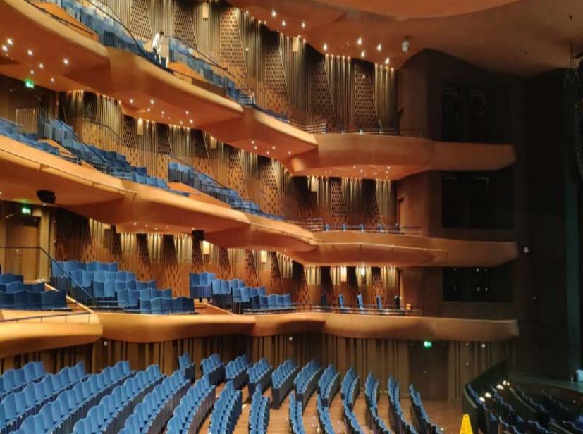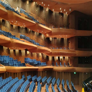 機械聲學裝置通常設置于(劇院等的)觀演區(qū)兩側、后區(qū)或頂部,是一種先進的聲學調節(jié)裝置,主要用于優(yōu)化不同演出場景下的聲學效果。通過聲學裝置的機械動作改變吸聲或反射面積,調整觀演區(qū)吸聲量,實現(xiàn)混響時間動態(tài)變化。同時具有高頻吸收特性,有效減少聲染色和回聲。