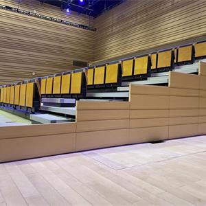 活動(dòng)看臺(tái)是一種可靈活調(diào)節(jié)空間布局的座椅系統(tǒng),廣泛應(yīng)用于體育館、劇場(chǎng)、展覽館等場(chǎng)所,使場(chǎng)館在平面大廳與看臺(tái)之間轉(zhuǎn)換。